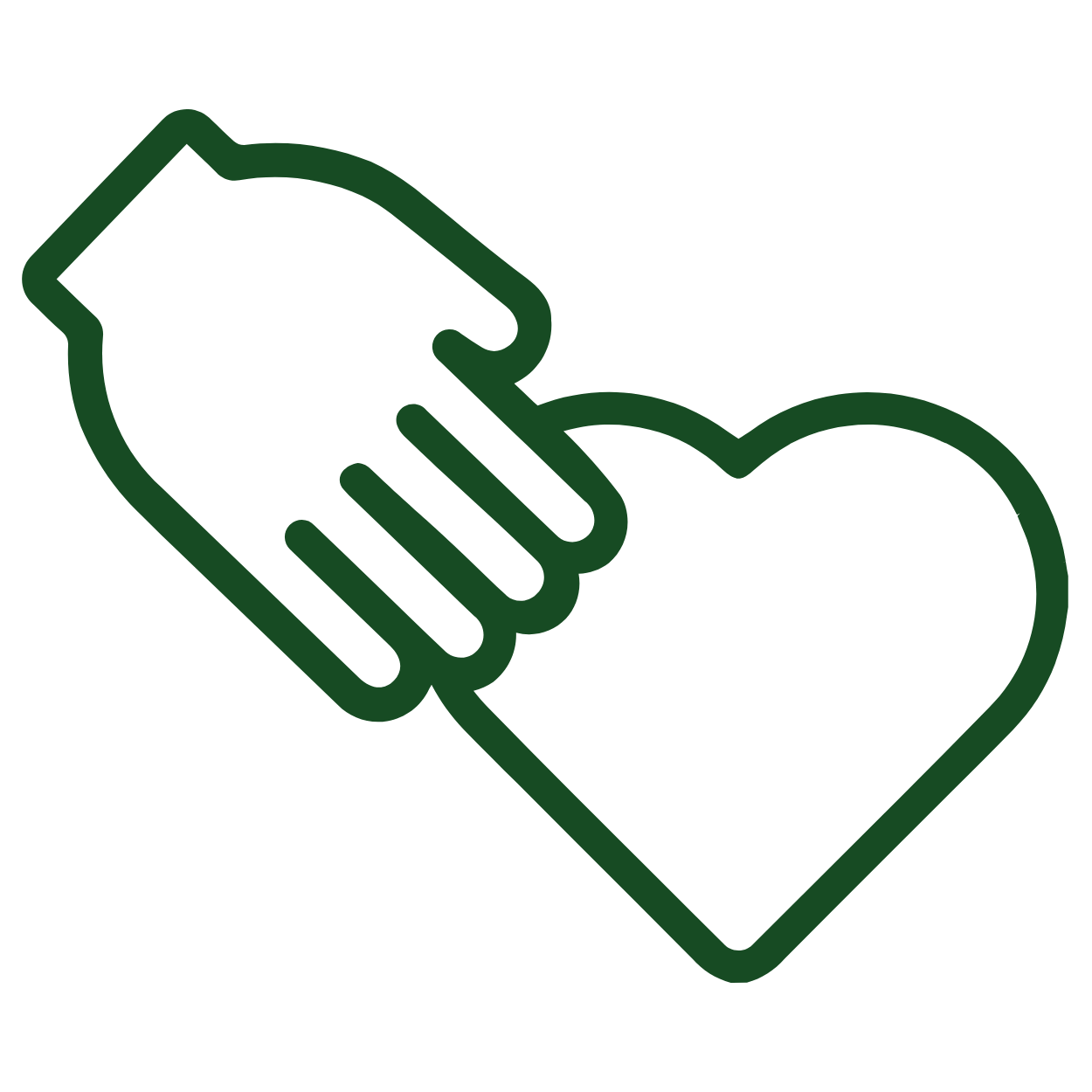 Outline drawing of a handshake over a heart
